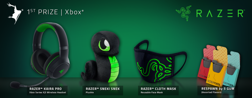 - (1) Wireless Headset for Xbox Series XIS and Mobile Gaming – Razer Kaira Pro valued at $149.99 OR Xbox One Wireless Headset – Razer Thrasher valued at $149.99