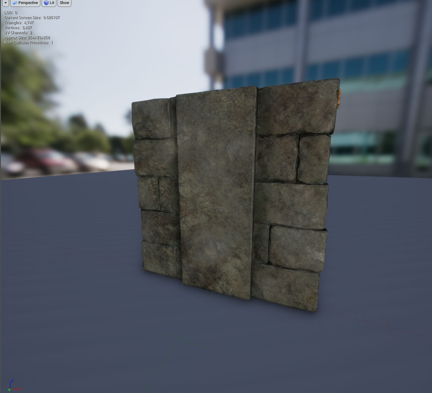 In an ongoing effort to improve game performance parts of the art team have been optimizing destructible building pieces, cutting down the number of polygons used in each building piece. Initially we were using an automatic solution built into the Unreal Engine, but that wasn’t particularly good for optimization. We’ve now “hand optimized” the building assets.
