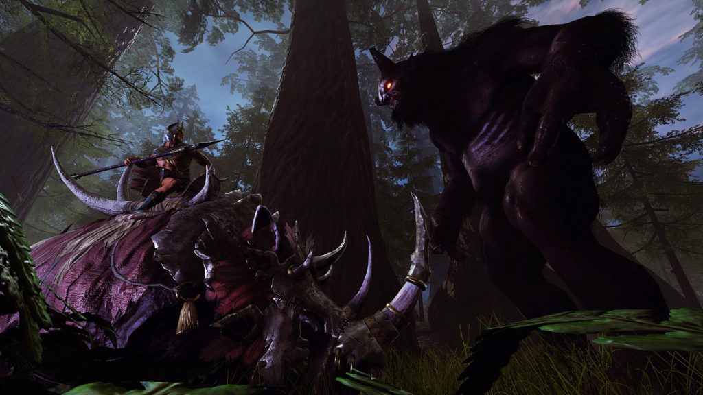 Zasiadając na grzbiecie nosorożca, możesz walczyć za pomocą włóczni i łuków. Z takiego połączenia człowieka z silnym, odpornym zwierzęciem powstaje niezwykle skuteczna platforma bojowa. Dobrą strategią jej wykorzystania będzie, na przykład, sprint na grzbiecie nosorożca w stronę nieprzyjaciół – z jednoczesnym ostrzeliwaniem się z łuku – zakończony nadzianiem ich na róg zwierzęcia. Następnie możesz wyciągnąć włócznię i dobić wroga, łącząc szybkie ciosy bronią z atakami rogiem nosorożca.