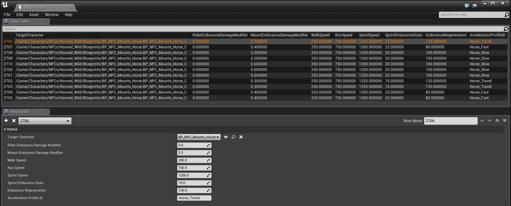 Ex: Acceleration Profile ID of a saddle is Horse_Fast , for it to work it requires 3 entries to be present in the MountMovementRates Table: