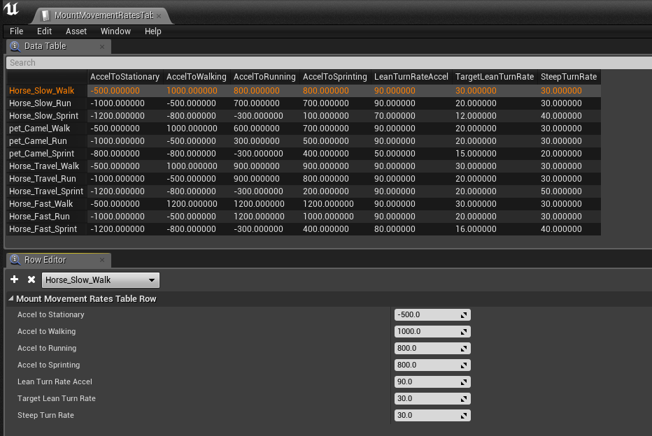 Following this concept, the left most parameter of the table is the Current Movement Mode (Horse_Fast_Walk).