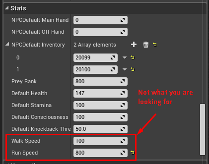 Inside creature blueprint you can find Walk and Run Speed stats. These are not related in any way to riding, only when creatures are walking on their own as monsters or pet. The image above shows Walking and Running Speed of a horse when we aren’t riding it.