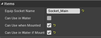Can Use in Water if Mounted - selected weapons are forbidden to be used when in a water, should any exploits be found this value can be used to stop it.