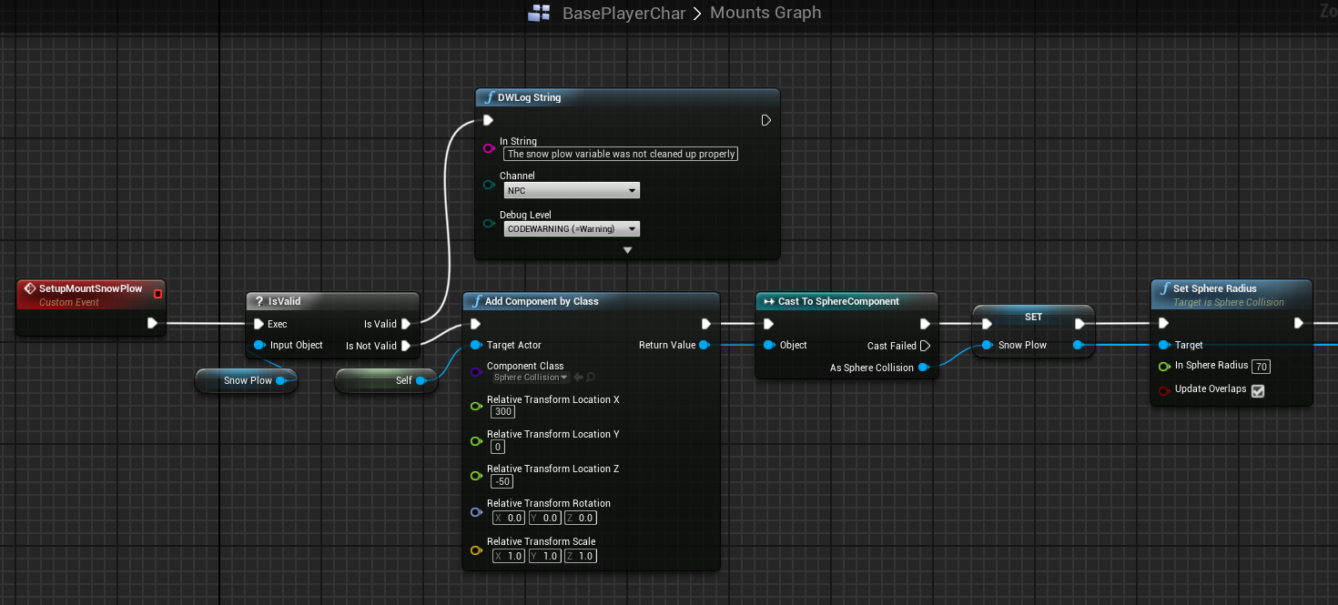 Its implementation can be found inside BasePlayerChar blueprint inside the Mounts graph. However, this will only end up calling the function ApplySnowplowKnockback that has to be defined for each mount that implements the interface, according to the needs of the mount (e.g. BP_NPC_Wildlife_Rhino or BP_NPC_Mounts_Horse).