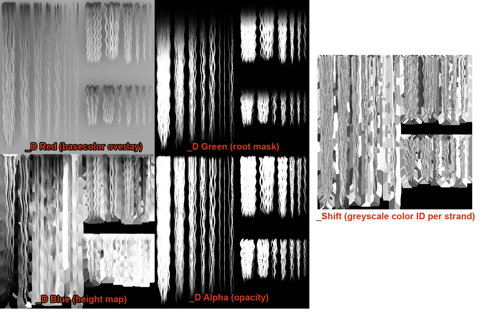 Note that as an exercise, it’d be great to redo the existing hair textures with current pipeline stuff if you prefer to have an existing hair layout to start from.