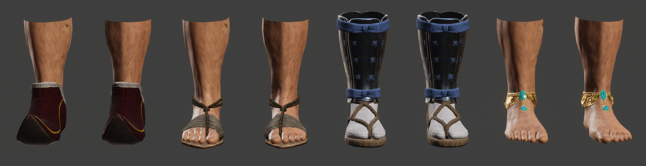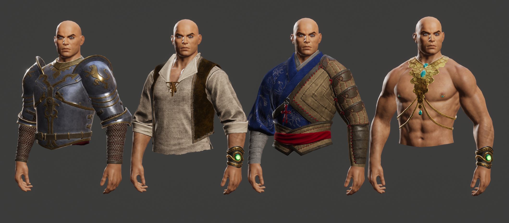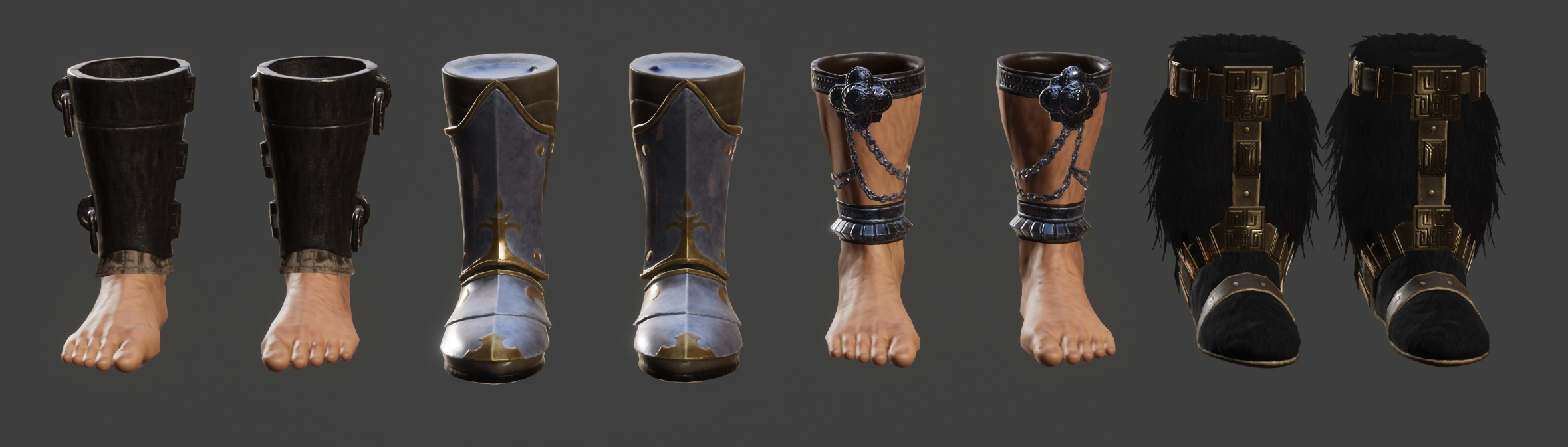 Conan Exiles equipment is broken up into 5 parts – Head, Top, Bottom, Hands and Feet. All armor and clothing pieces in the game can be worn interchangeably across sets, therefore the designs need to conform to these 5 sections.