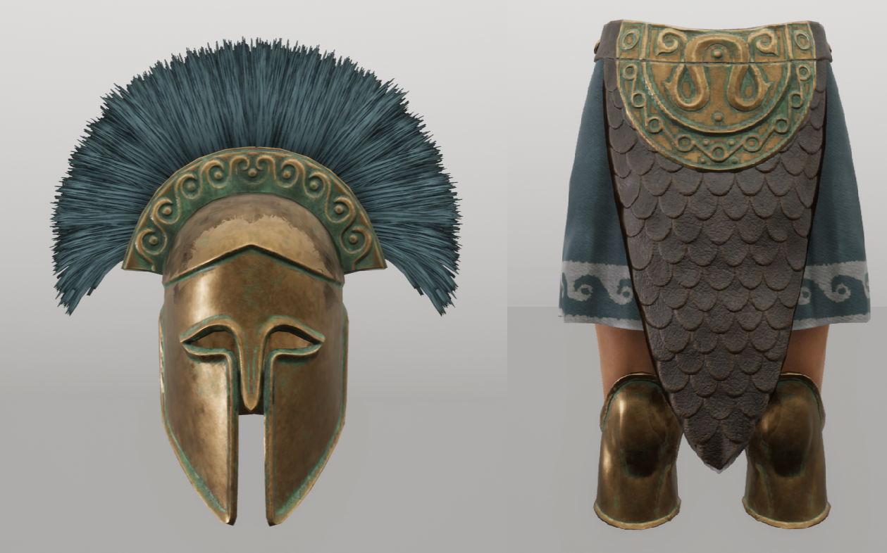 As every piece of the armor can be worn alone, or paired with pieces from any other armor set in game it is important that every piece works individually. For example in cases where the armor covers the waist both the bottom and top part of the armor needs to have a proper finish in the area where the split goes, so neither looks unfinished/not plausible on their own, in addition to looking good together.