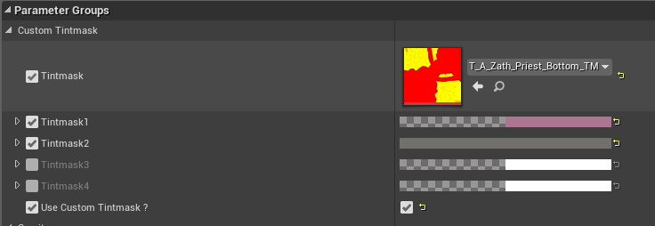 Once you have the new material in your folder, you can open the material and assign the armor set textures to the Tint Mask, Diffuse, Mask and Normal slots by dragging and dropping from your Textures folder, or searching for it in the slot roll down menu. Then tick on [X] Tintmask and both ticks on [X] Use Custom Tintmask? [x]. Also tick on the channels you are using, and use the respective colors pickers to find the colors you want for the armor. Most of the time it is easier to see how the armor will look if you assign the material to the mesh and have it open as reference as you are picking the colors.
