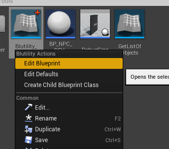 Right-clicking a blutility and selecting “edit asset” will allow you to open the editor for the blutility
