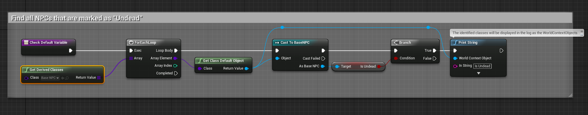 There is an issue in Unreal where the defaults that are set on a component of a base class are not accessible from the CDO of the class. So the script above would not work when checking something in the defaults of the AILOD component of BaseNPC, for instance.