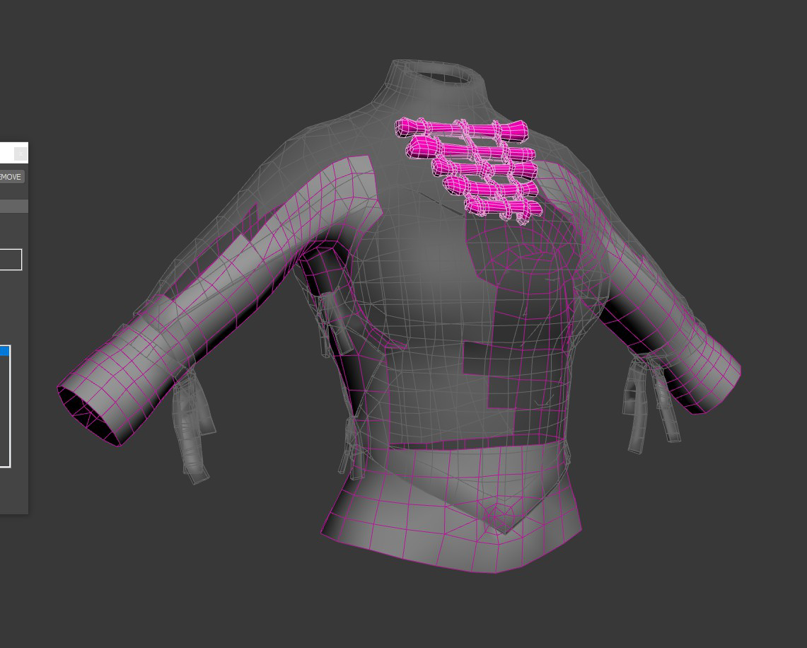 The model on the right needs to have a tuck mesh made. The same goes for top pieces, if the arms are bare, no tucked mesh is needed.