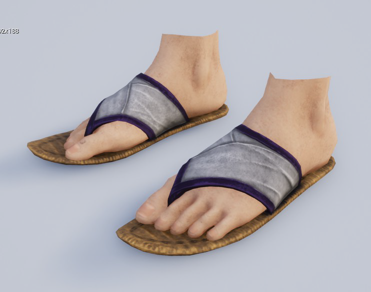 For these low shoes, a part of the foot mesh was left attached to the model so there wouldn't be an