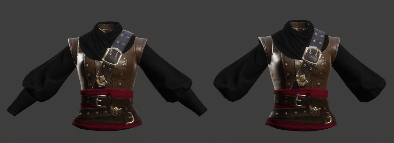 Above you can see tucked and untucked version of the same armor piece.