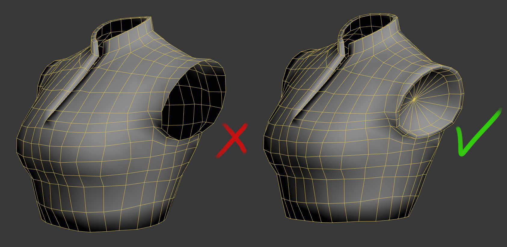 poly density. And you should always aim to make your retopology poly flow to match closely with the underlying body part. A good way of making sure the topology matches the body mesh is importing the