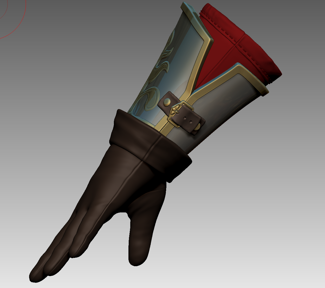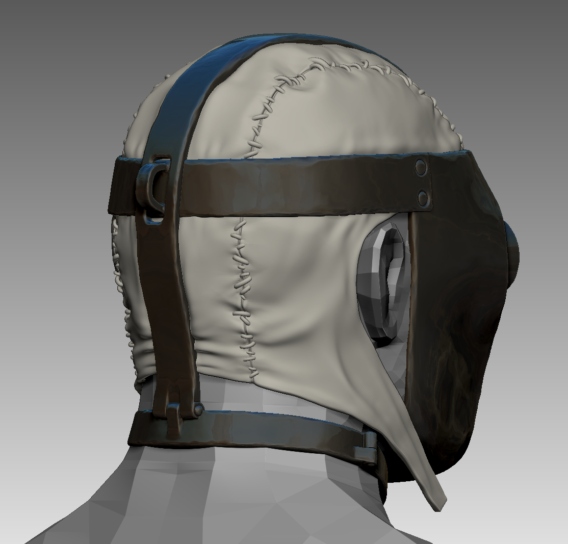 Notice how all the seams are made visible by adding stitching and impact wrinkles between the stitching and the fabric. T he metal is either welded together in sculpt, or held together with metal studs to avoid hard, unnatural hard transitions between the different pieces of the armor.