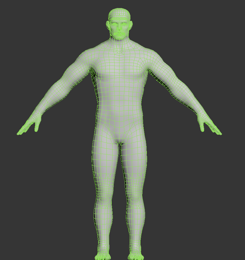 Base body parts can be used as a starting point for retopology. We frequently scale up, mesh
