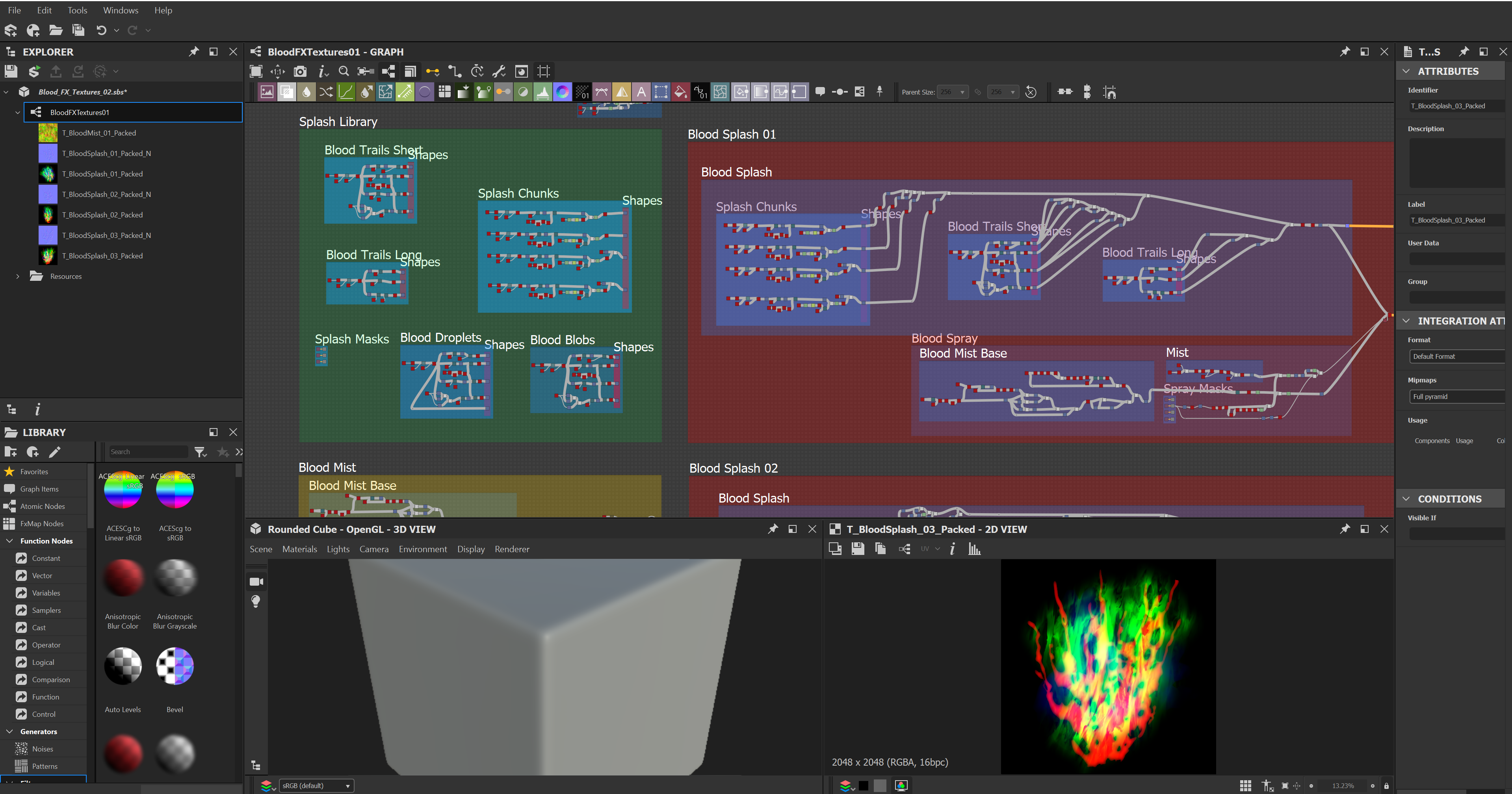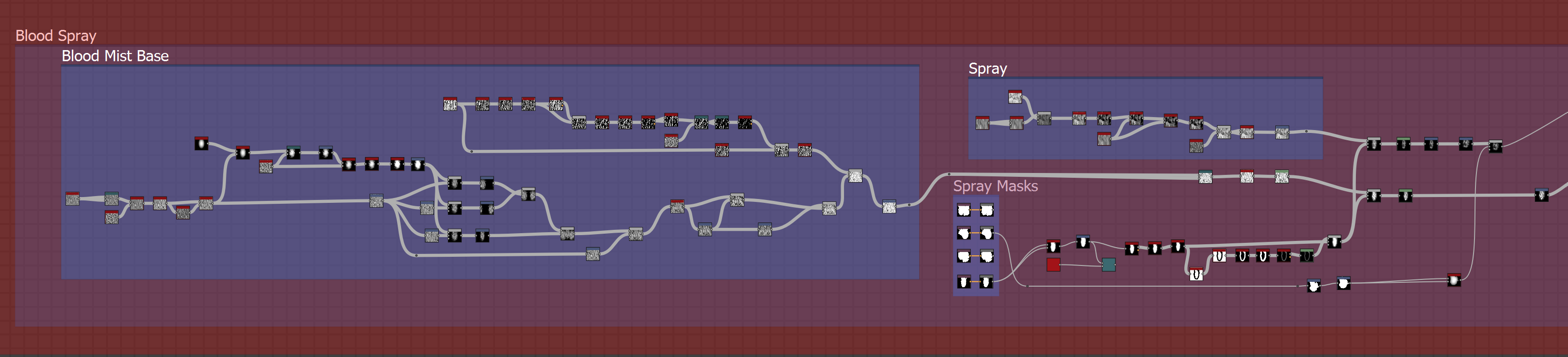 The other elements to the Blood splash are the Spray and Mist which will comprise the other two channels of the packed texture. The masks can be changed for varying the overall shape of the Spray and Mist.