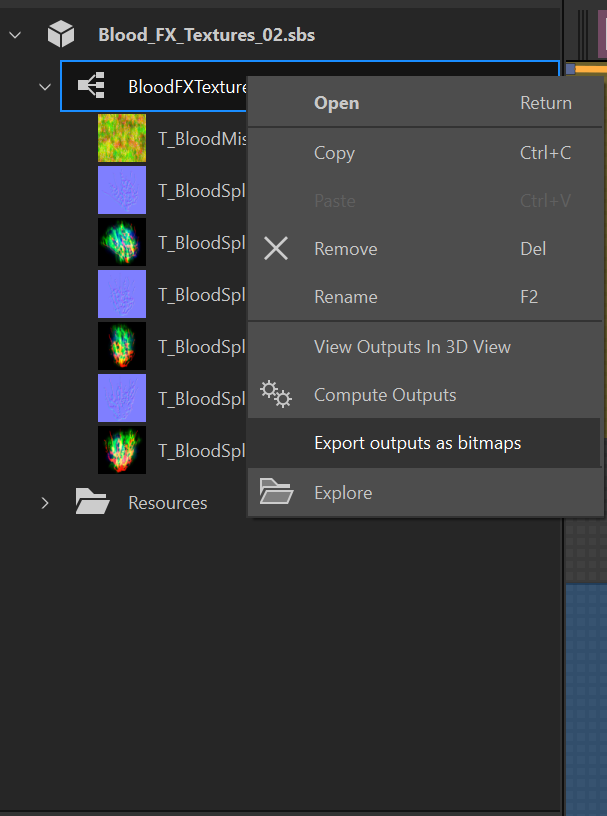 To export the textures individually or all together, go to the texture graph, right click and select “Export outputs as bitmaps.”