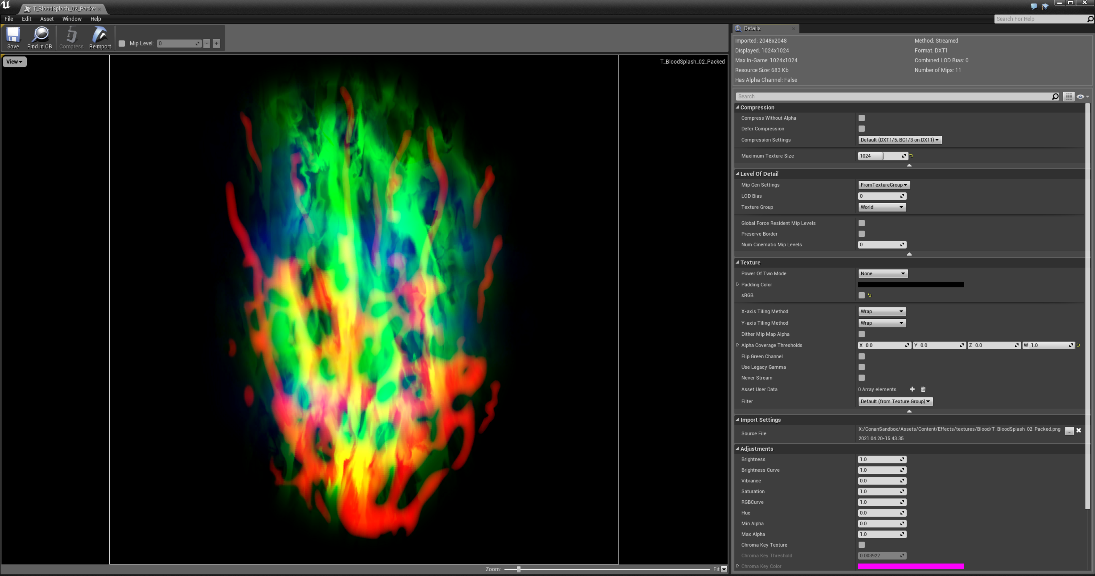 Texture Location in Unreal Editor: Content > VFX > Textures > Blood