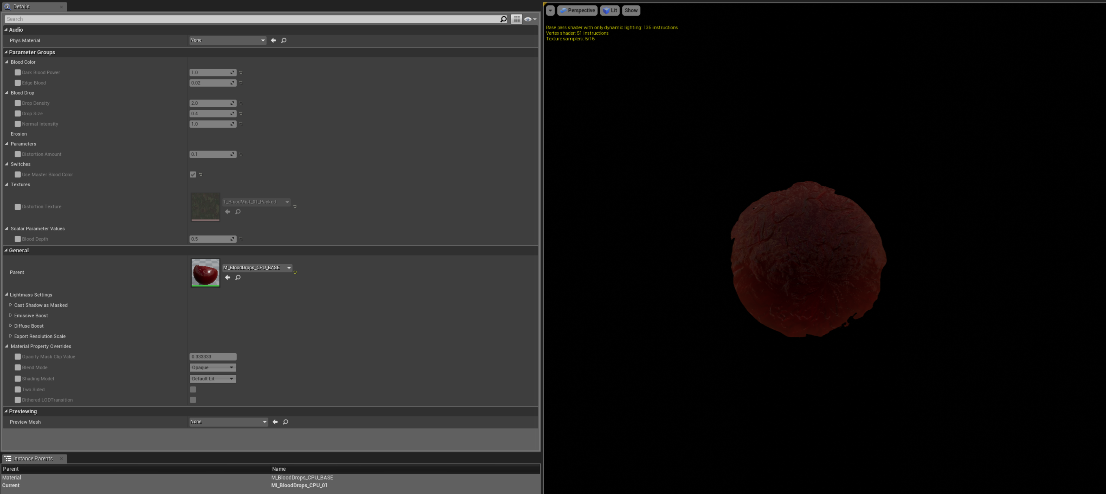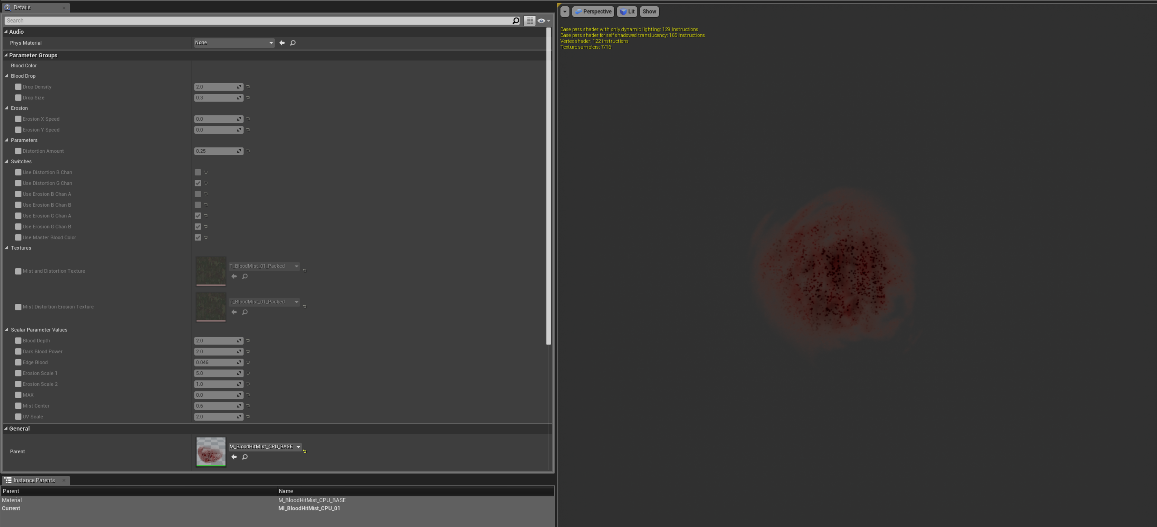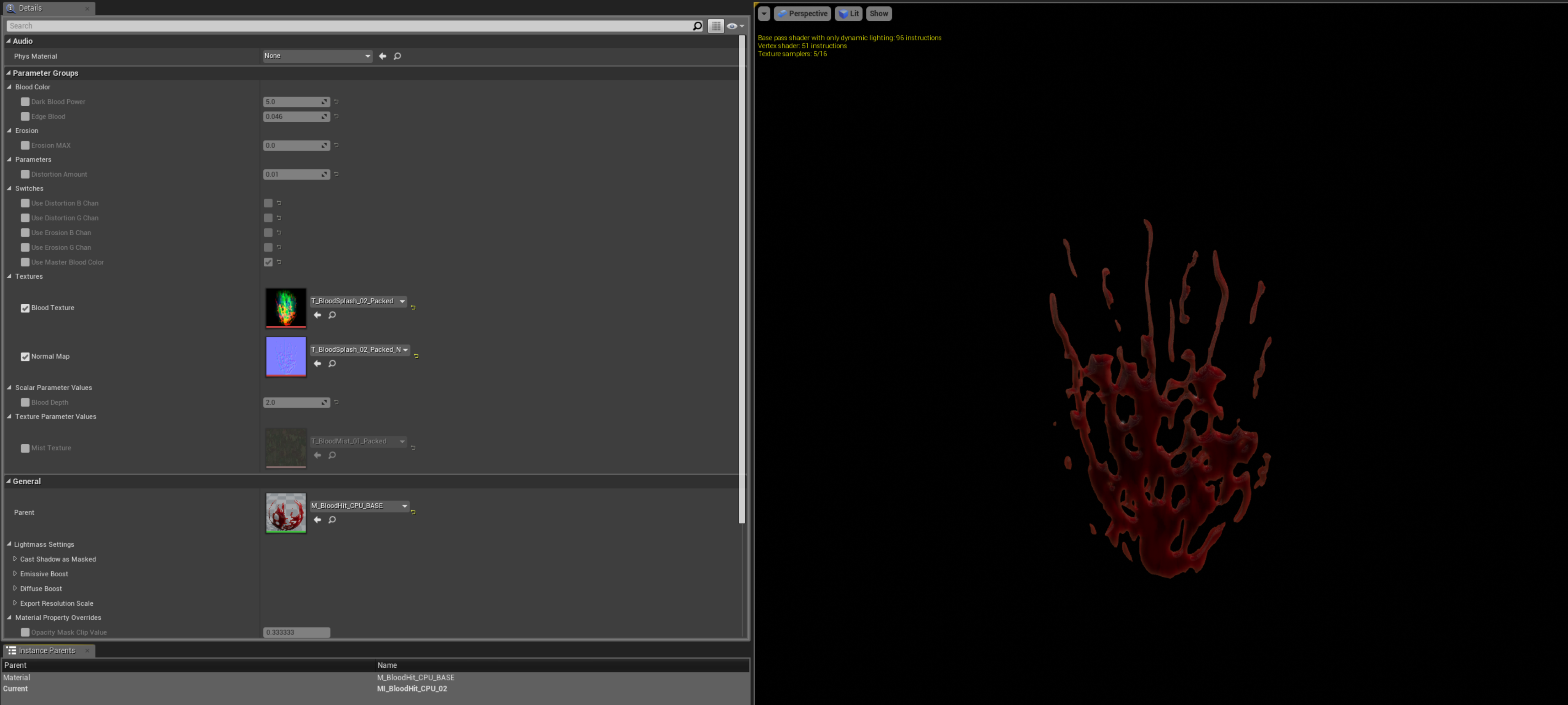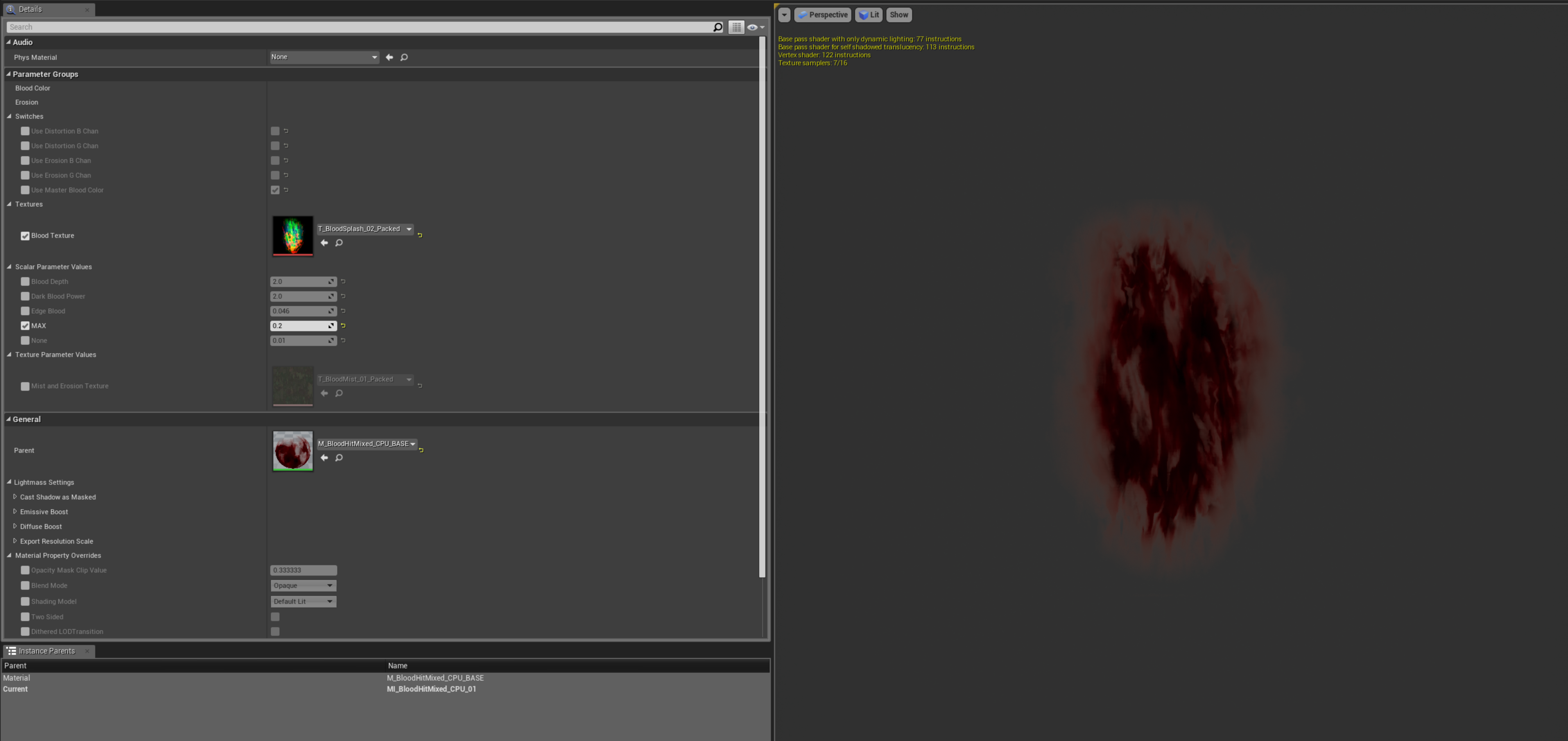 Each blood MI has a set of parameters and texture slots that should be used sparingly. You can view all of them further down the page in the MATERIALS REFERENCE section.