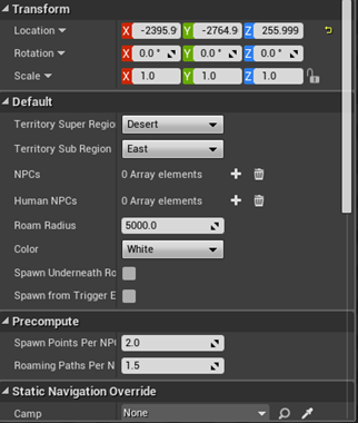 The NPCTerritorySpawner blueprint can control a number of things as far as the camp is concerned. However - for this tutorial, we'll only concern ourselves with the important ones.