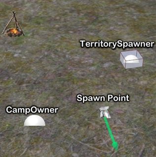 If you have pressed play at this point, you might have noticed that the NPCs stubbornly refuses to spawn. In addition, you might have noticed that if you destroy the placed decoration, they do not respawn until you restart the game. This is because we haven't tied the TerritorySpawner, CampOwner and Camp assets together. So let's do that.