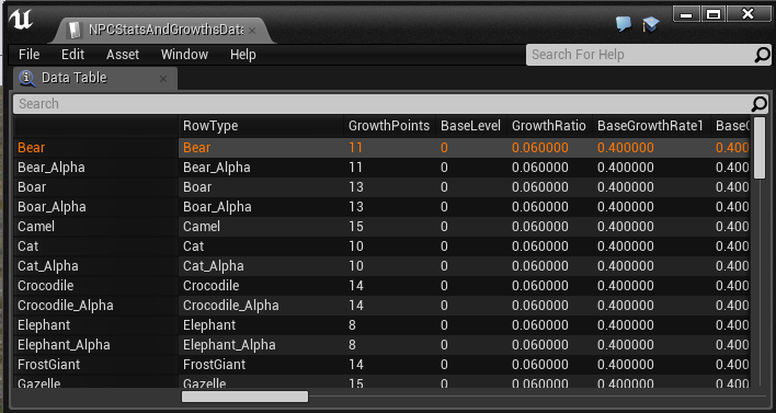 The spawn data table has entries related to the NPC progression system. They are as follows: