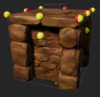 In the Viewport, the sockets are the yellow and red balls. The facing of the yellow and red sides is important. By default, sockets connect Yellow-To-Red (also known as “Normal Rotation.” A Yellow-To-Yellow connection would be a “Rotation 180” – more about rotations later)