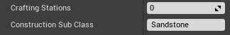 Then make sure the Recipe entry in the RecipesTable is set to handcrafted ( Crafting Stations 0) and has a Construction Sub Class . (The Construction Sub Class determines the tab it will appear under in the Construction Mode UI.