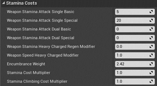Weapon Stamina Attack Single Basic - How much stamina a normal light attack should cost