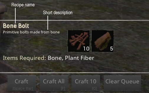 Building Module - If your recipe is an upgradeable building piece or placeable, the blueprint should be linked here. This is not a requirement, but if the crafted result here matches with the blueprint set on a stations "Upgrade Target", the crafting station will be replaced with the crafted resulting station/placeable.