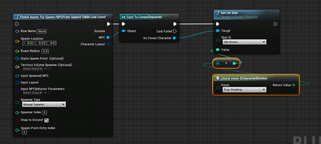 Please note that the PlayEmote async node is temporarily using IdleEmote Int Stat to store the currently played emote. After the emote is finished, the value of IdleEmote Int Stat will be reverted to the previous value.