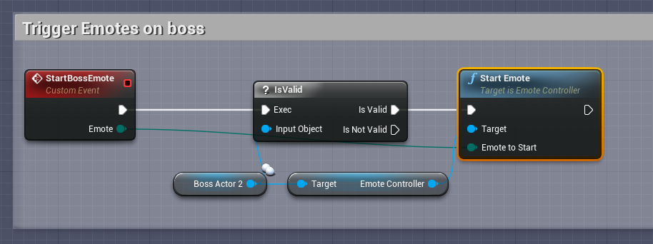 Emotes can be also started directly by calling the Start Emote function on Emote Controller of given NPC.