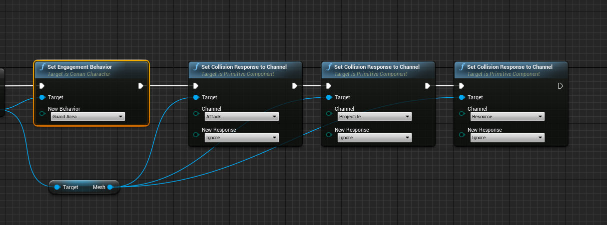 The non-roaming NPCs can play idle emote if they are at their home locations and if they are not engaged in combat. This behavior is controlled from the BT_Passive behavior tree: