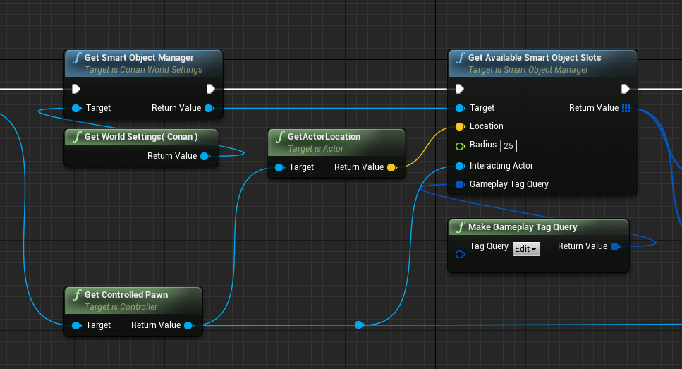 GetAvailableSmartObjectSlots(Location, Radius, InteractingActor, GameplayTagQuery)