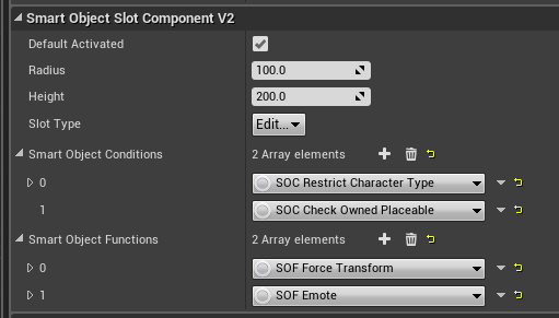 This section is only useful when you are trying to make a new kind of object that uses smart object slots. Placeables already have all of this set up by default (see the section below).
