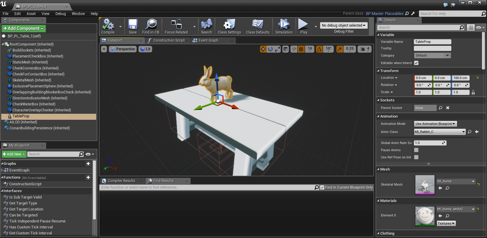 Here is an example of placing a skeletal mesh on a placeable table that the interacting character will be able to pick up: