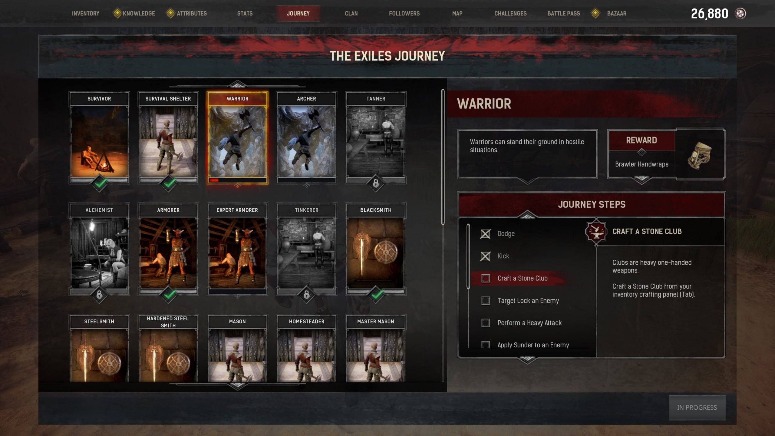 新的旅途系统对回归的玩家特别有用,它现在扮演的角色是《Conan Exiles》中现有功能的指南。如果你想了解如何驯马,请选择骑士护卫旅途。如果你想学习法术,请选择术士旅途。